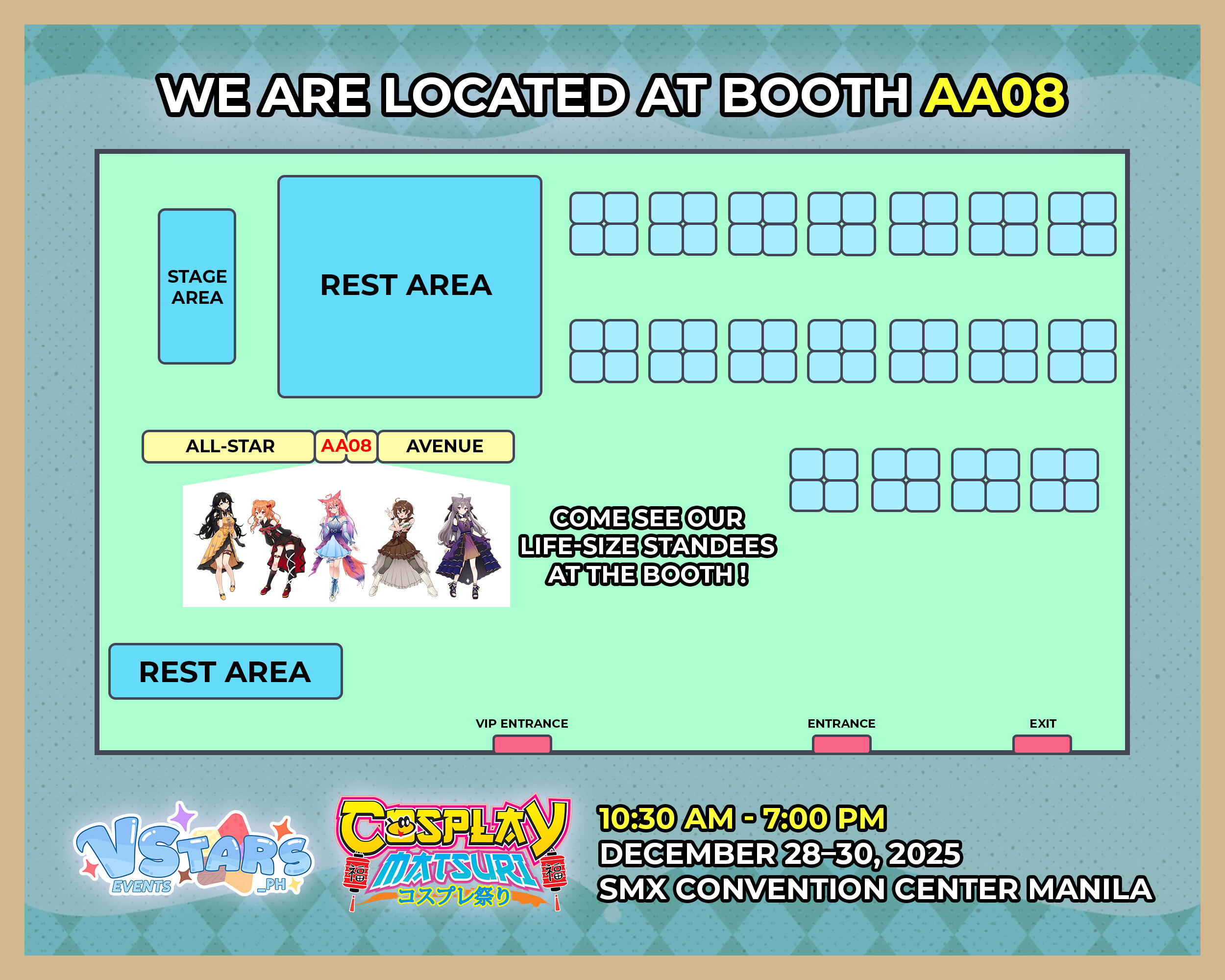 🎉 STAMP RALLY DETAILS - COLLECT, PLAY, WIN! 🎉✧ Grab your Stamp Rally Card for free at the Merchandise Booth! You can get up to 5 cards at a time, and also buy your VStars Gala Pass there.✧ Complete 5 exciting activities to finish your stamp rally: