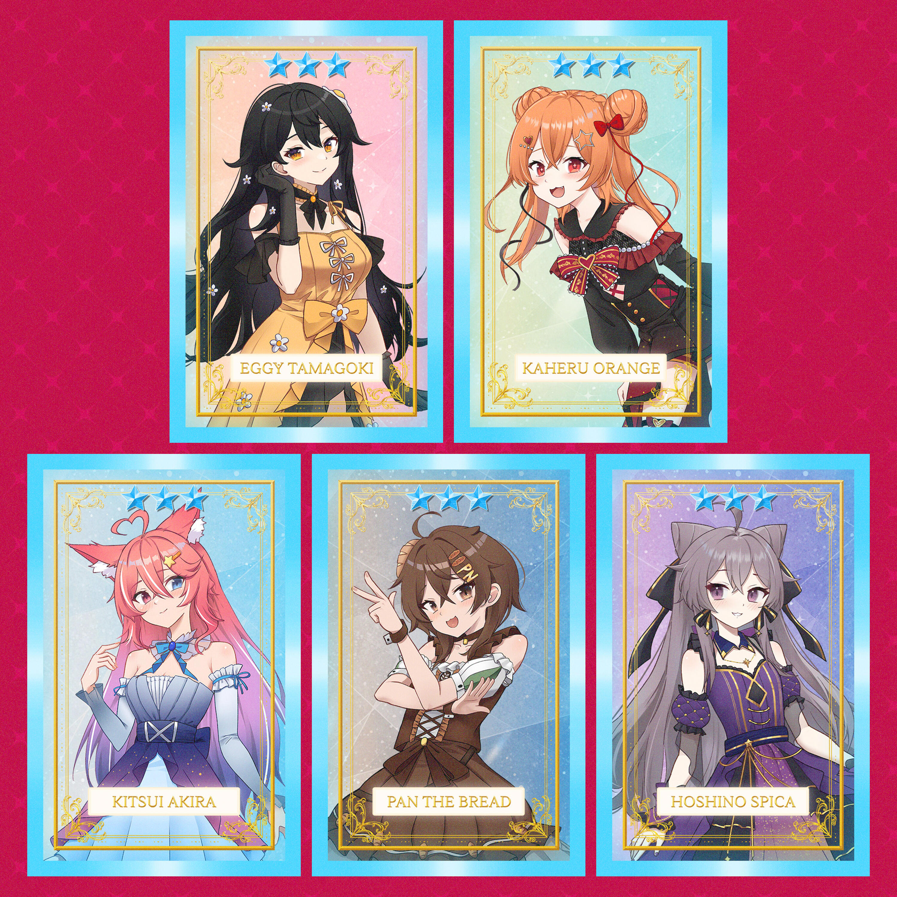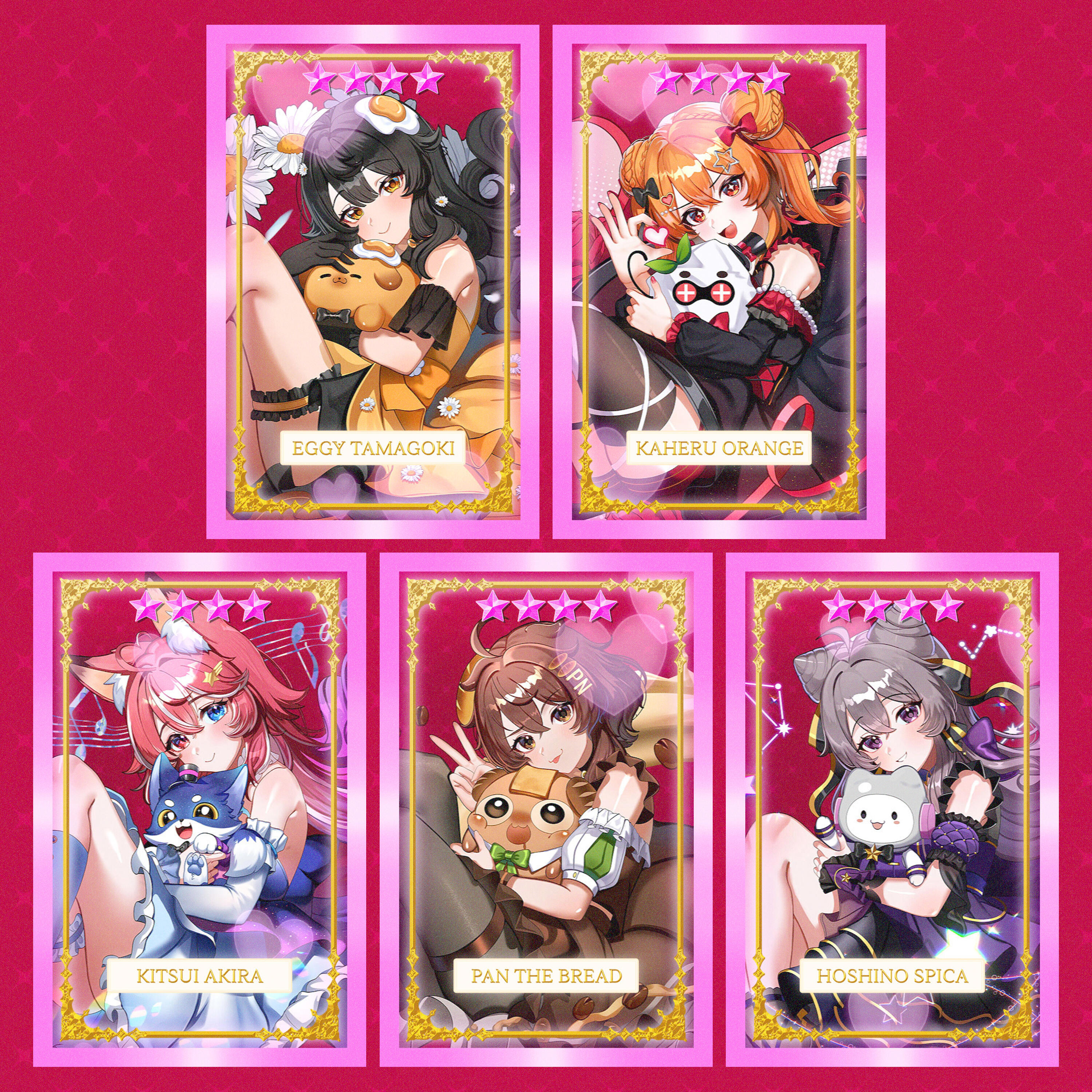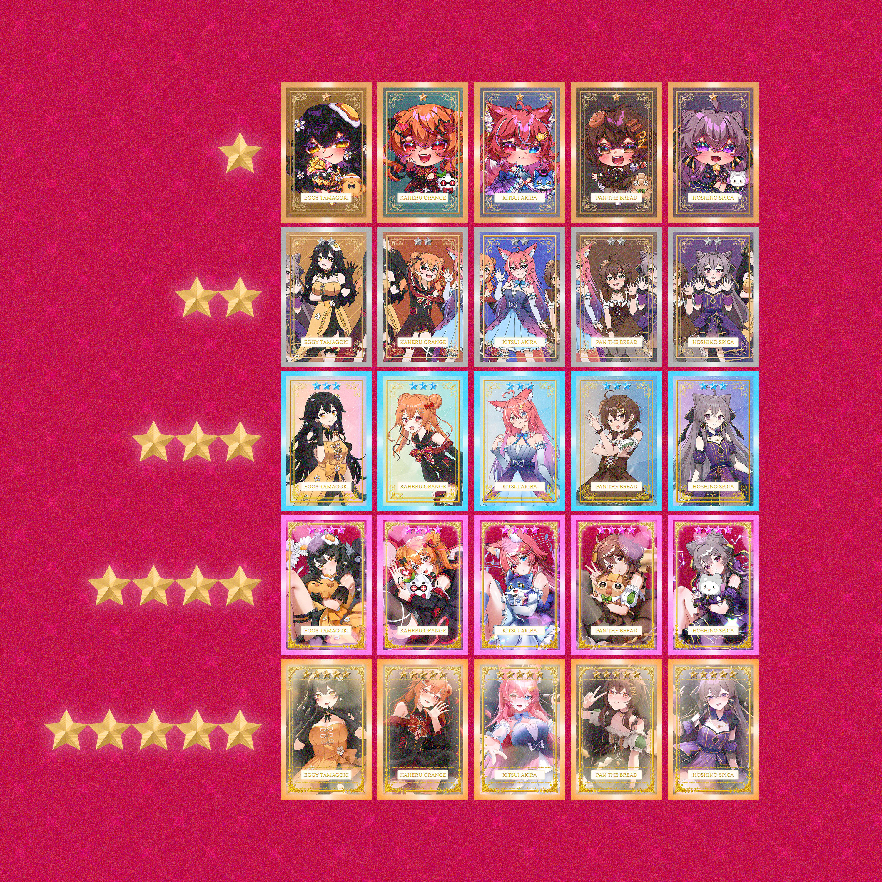 ✧ A single gacha pull is just PHP 50! Each pull has a less than 1% chance to snag that elusive 5★ card!✧ Want guaranteed excitement? A Booster Pack costs PHP 500, the same price as 10 single pulls, but with a 100% chance to score one random 4★ and 5★ card. No risks, all rewards! (+ you can trade duplicates if you buy 4 packs at once)✧ Collect them all! There are 25 cards total, featuring 5 different rarities for each VStars talents!