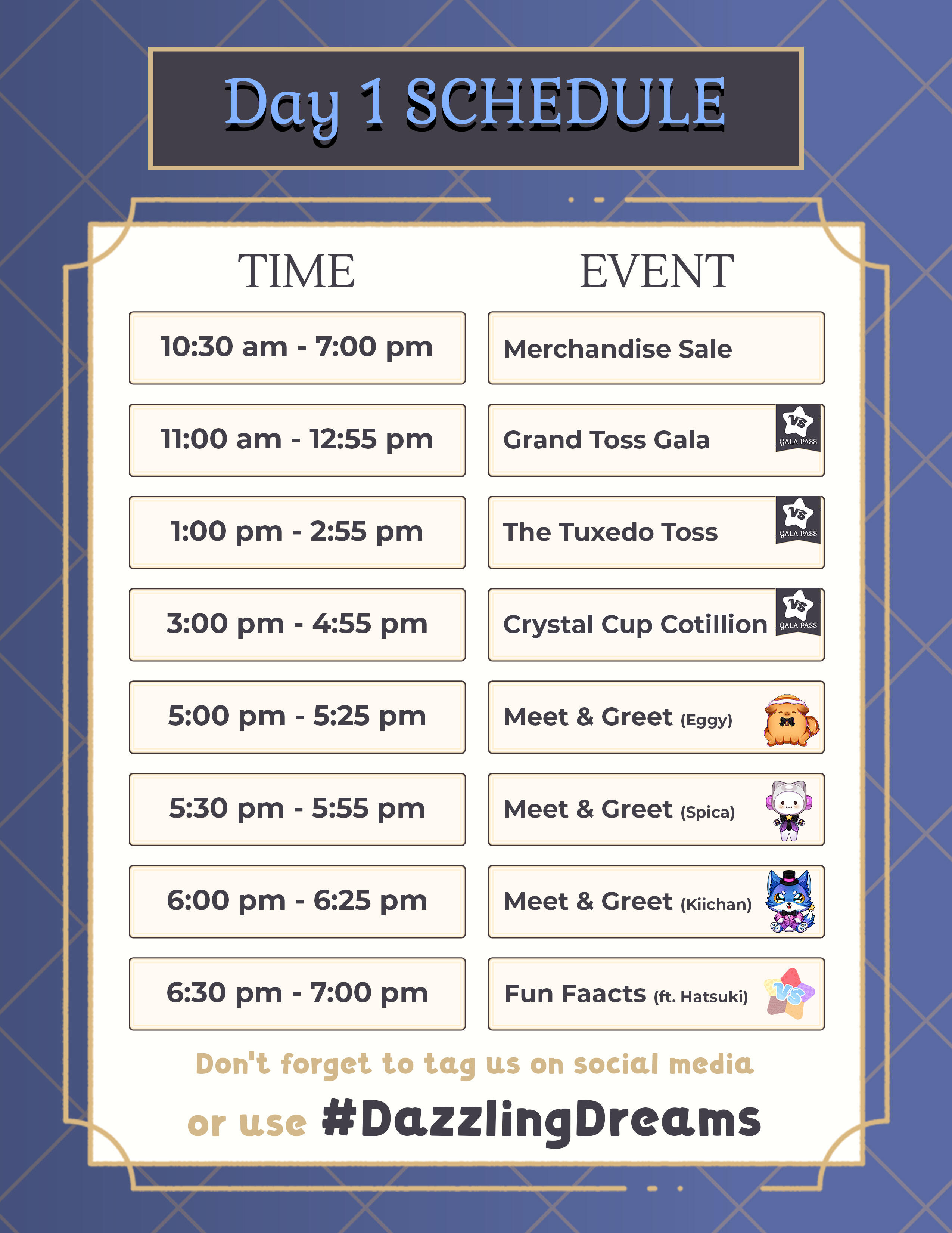 Gala Games require a VStars Gala Pass - tickets start at just PHP 10 each!✧ Finish all 5 activities? Return your card to the Merchandise Booth to claim your exclusive Stamp Rally prize. You can complete up to 5 cards at once if you want to get all 5 rewards or just get 5 Kiichans too!✧ Stay till the end of the day for free games and extra exclusive merchandise - don’t miss out in this Dazzling Dreams!
